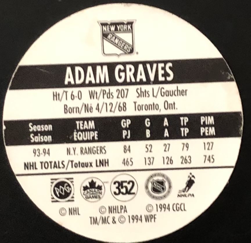 Lot 1055 1994-95 7-ELEVEN NHL POGS - ADAM GRAVES