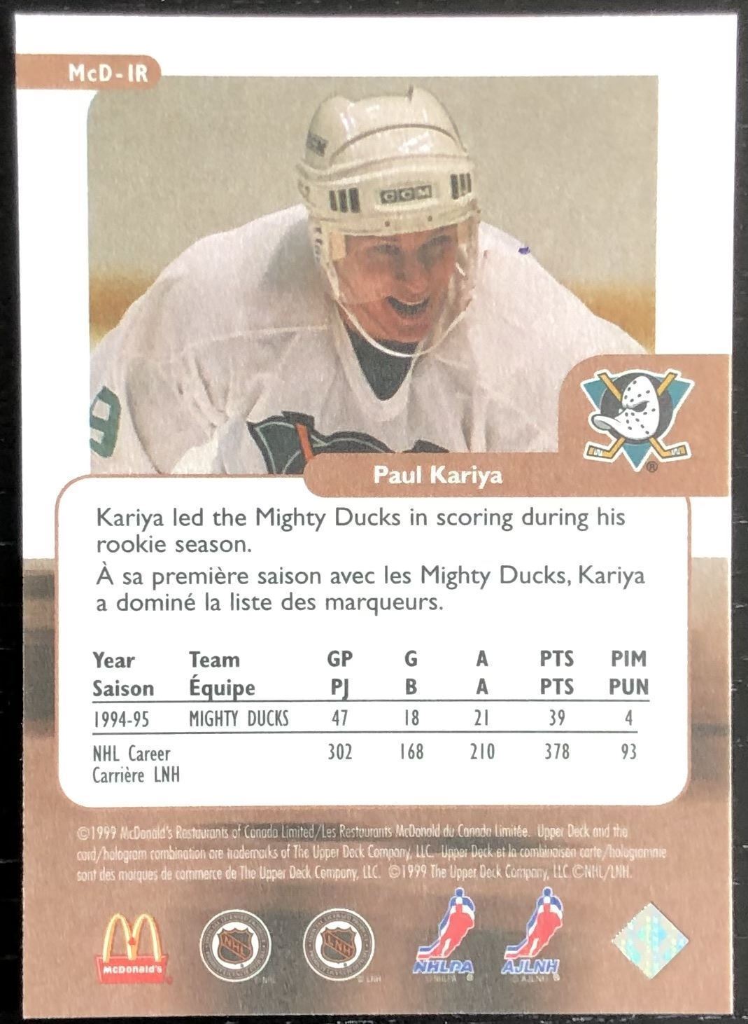 Lot 1063 1999-2000 UPPER DECK PAUL KARIYA (HOF)