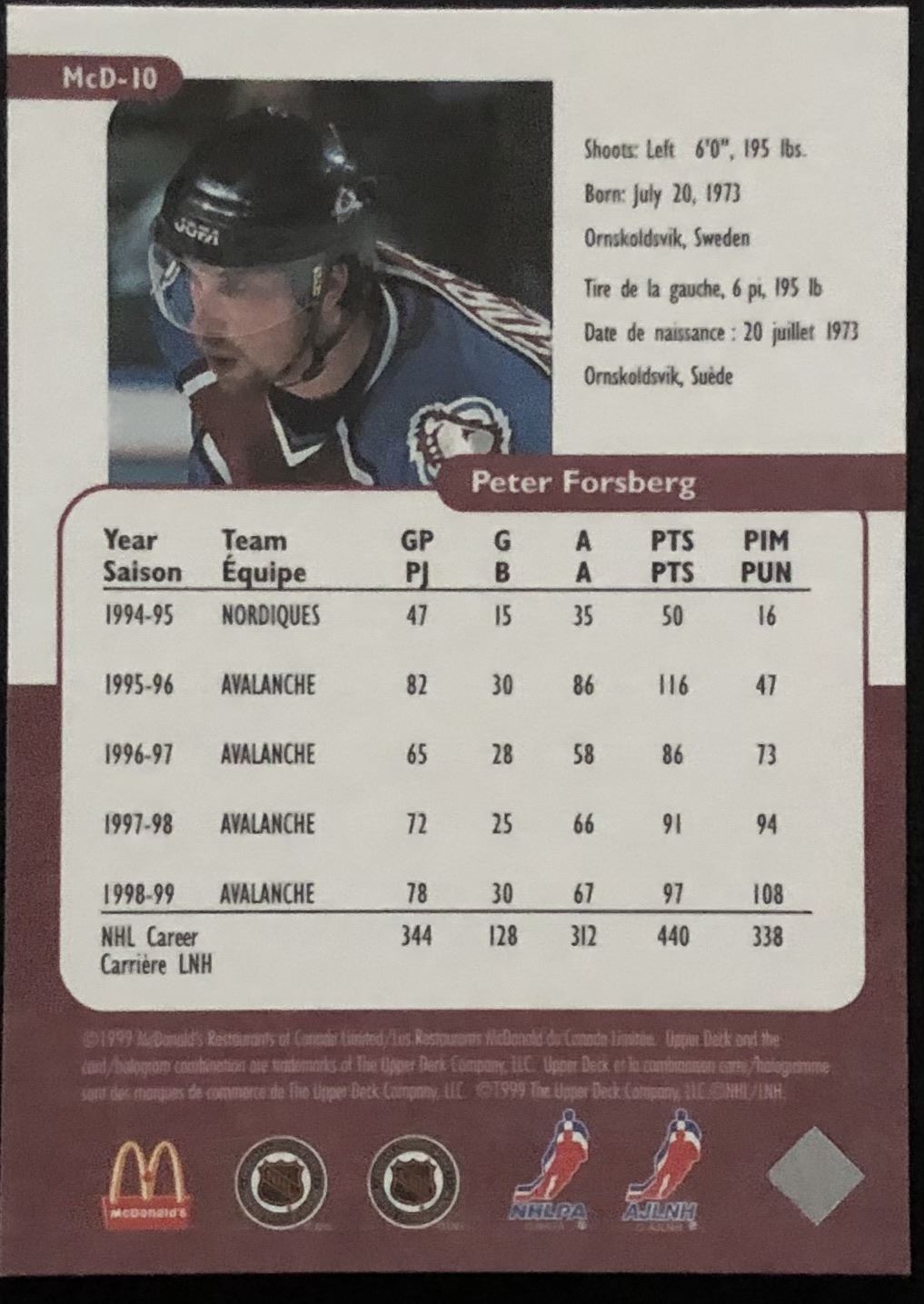 Lot 1065 1999-2000 UPPER DECK RETRO PETER FORSBERG (HOF)