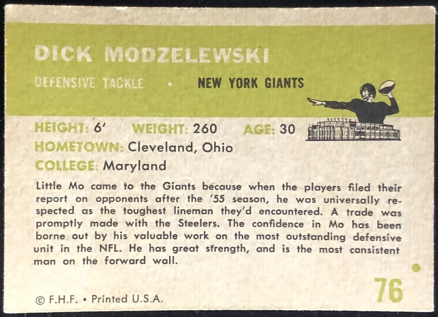 Lot 1069 1961 FLEER NFL DICK MODZELEWSKI