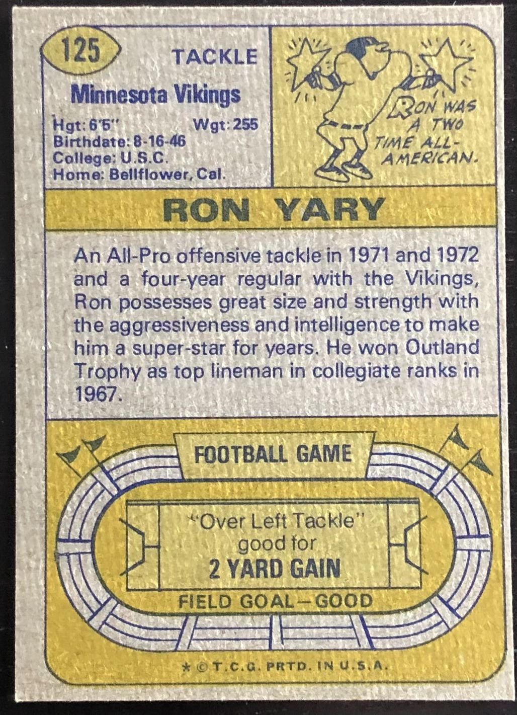 Lot 1075 1973 TOPPS NFL RON YARY (HOF)