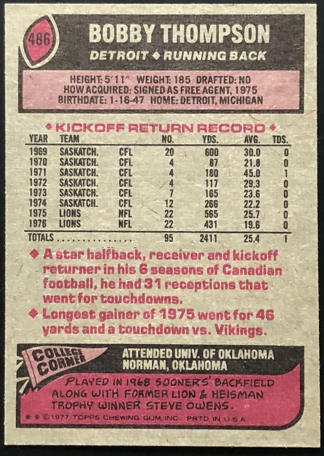 Card #486 NFL, football, vintage