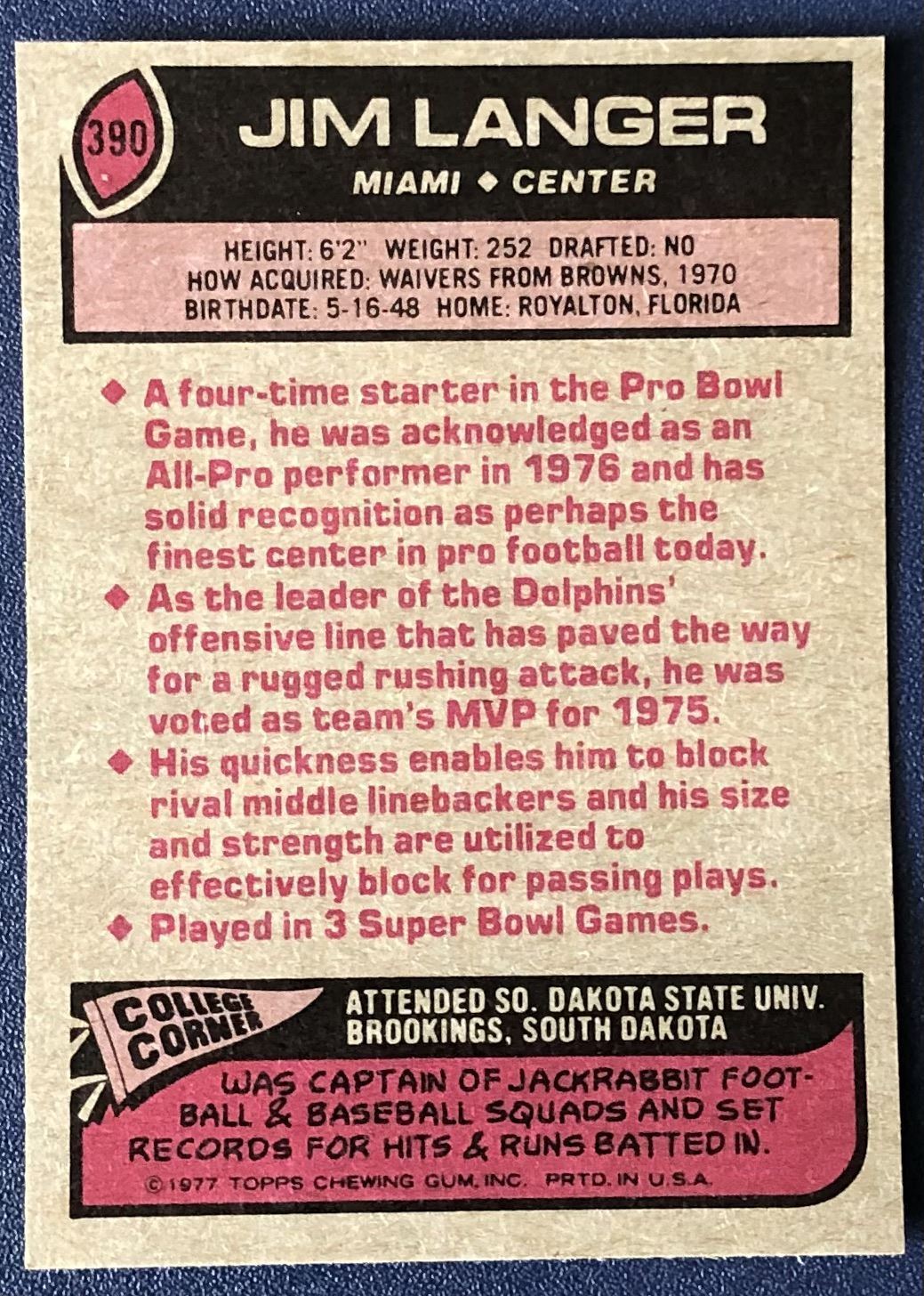 Lot 1084 1977 TOPPS JIM LANGER (HOF)