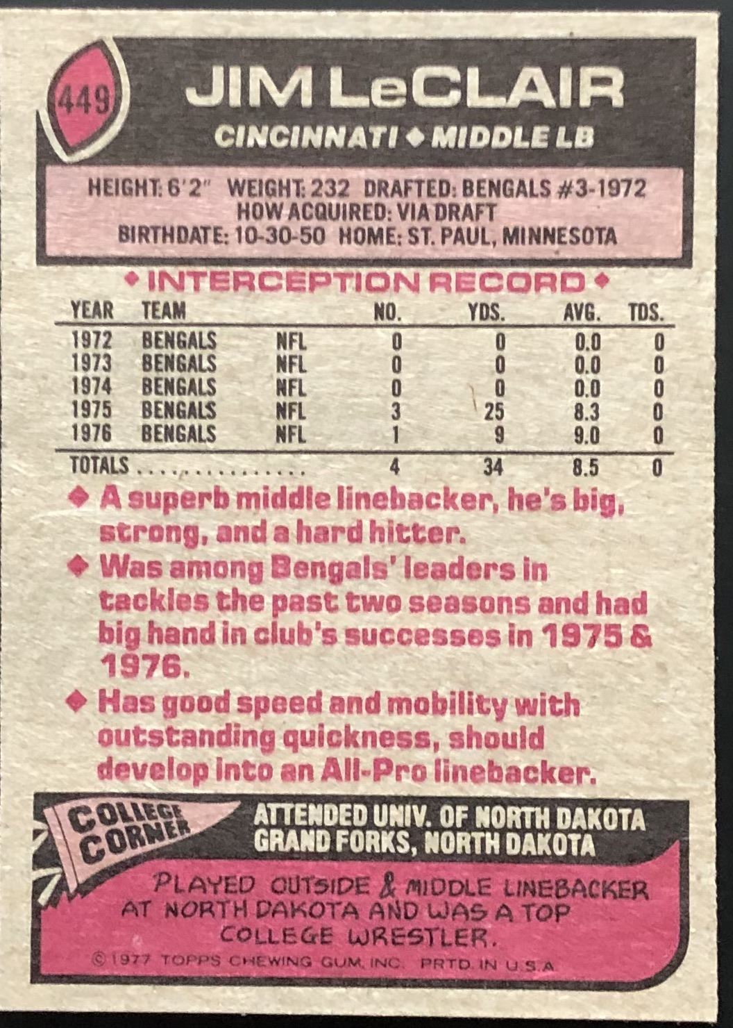 Lot 1085 1977 TOPPS JIM LeCLAIR