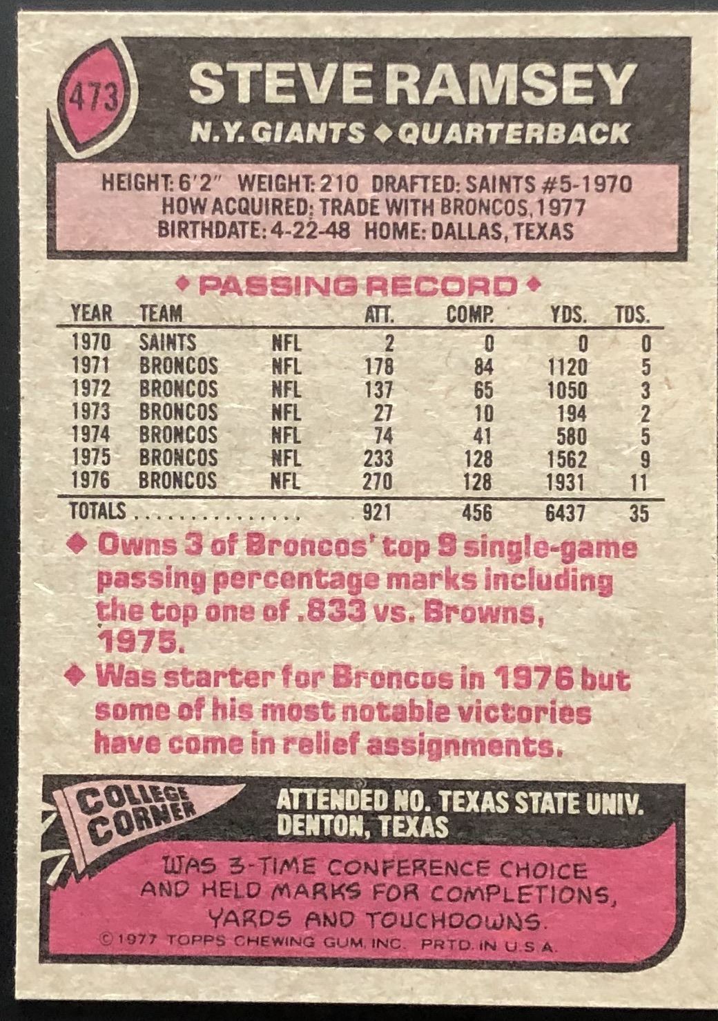 Card #473 NFL, football, vintage