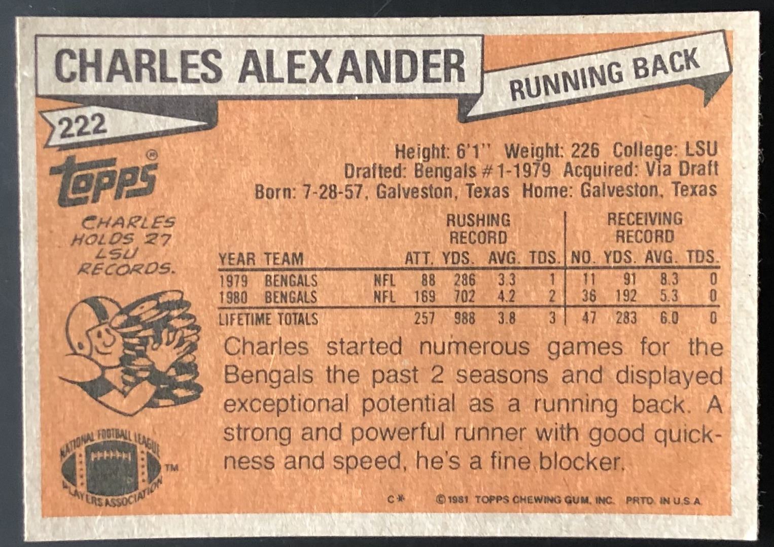 Lot 1089 1981 TOPPS CHARLES ALEXANDER