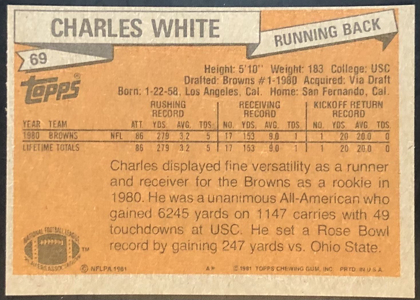 Lot 1090 1981 TOPPS CHARLES WHITE ROOKIE CARD