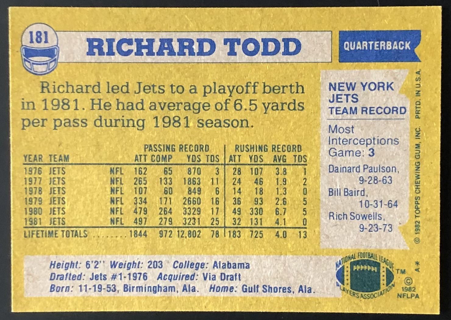 Lot 1096 1982 TOPPS RICHARD TODD