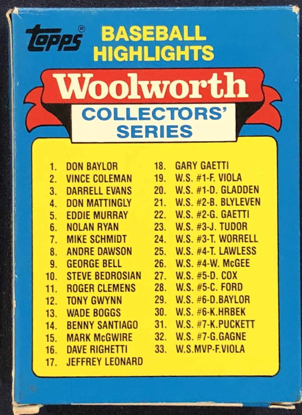 1988 TOPPS WOOLWORTH BASEBALL HIGHLIGHTS BOX SET