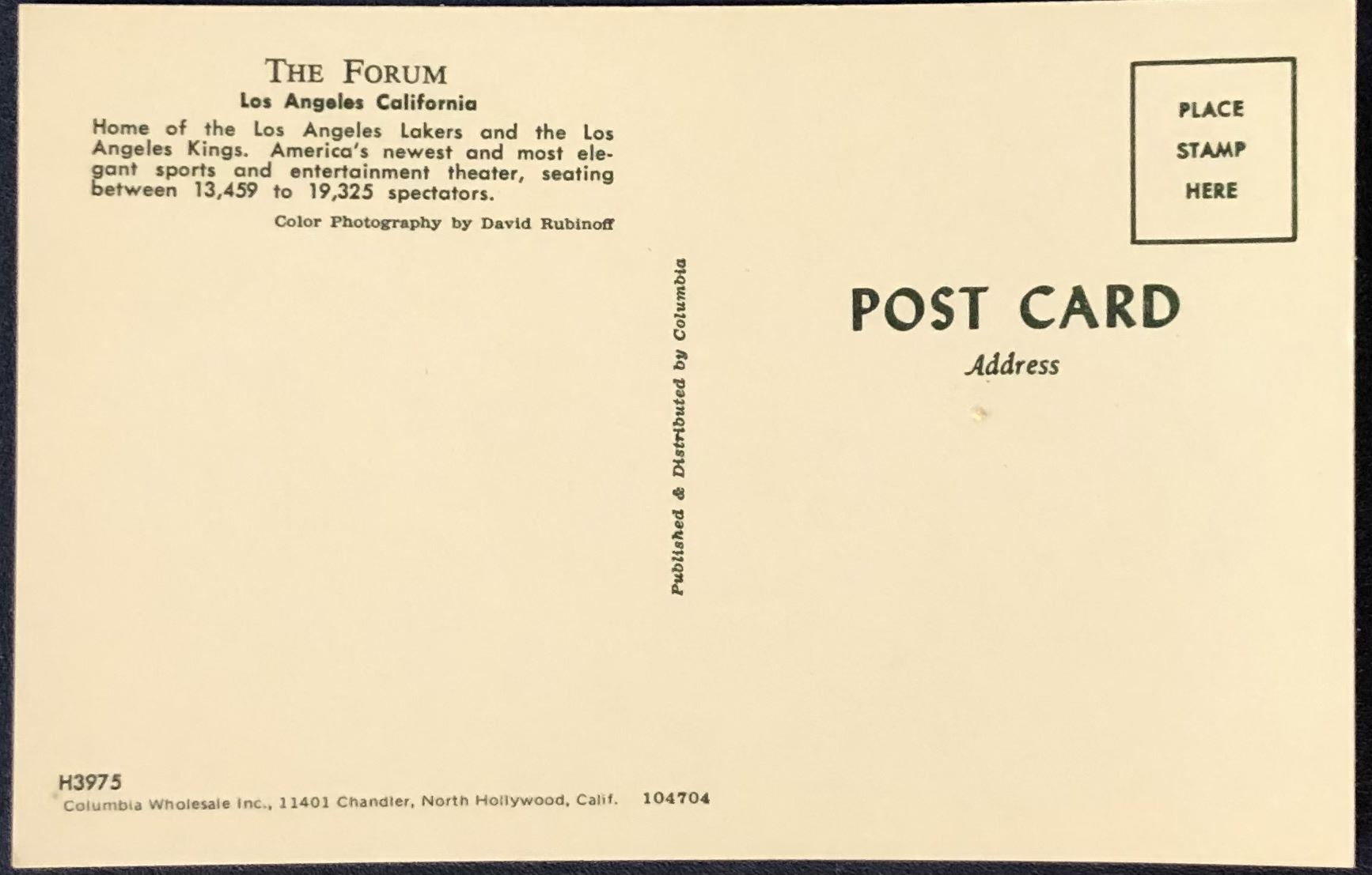 Lot 1145 1950's LOS ANGELES FABULOUS FORUM POST CARD
