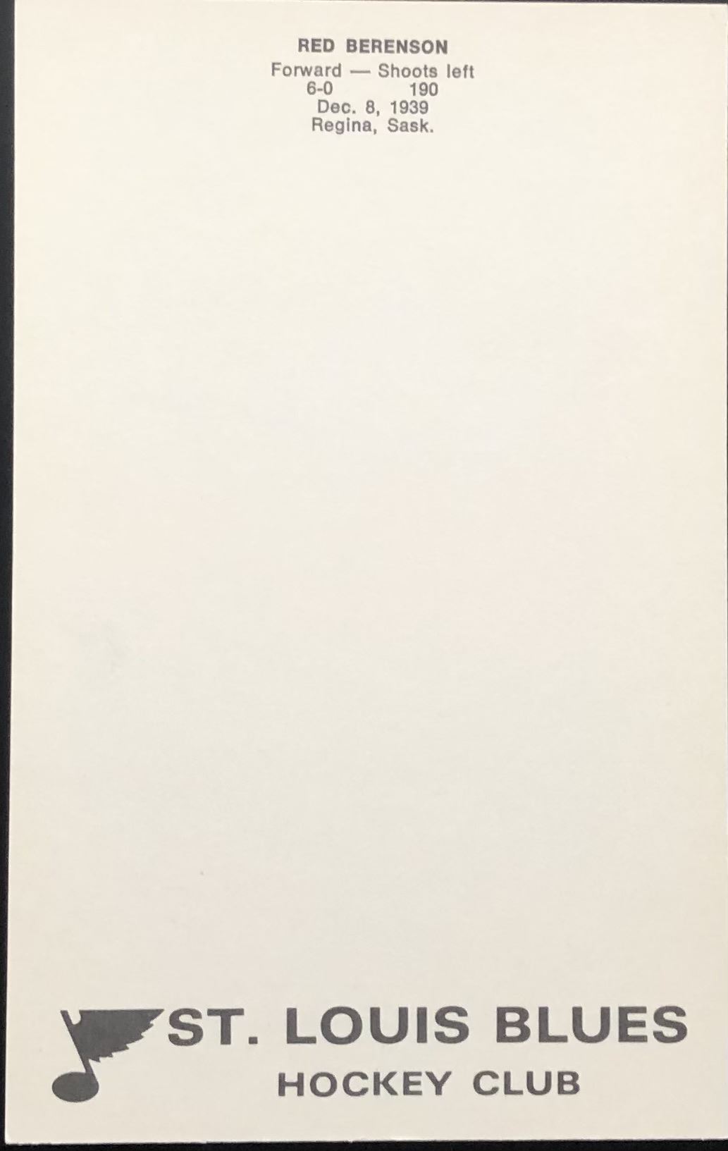 Lot 1151 1968 ST. LOUIS BLUES POSTCARD - RED BERENSON