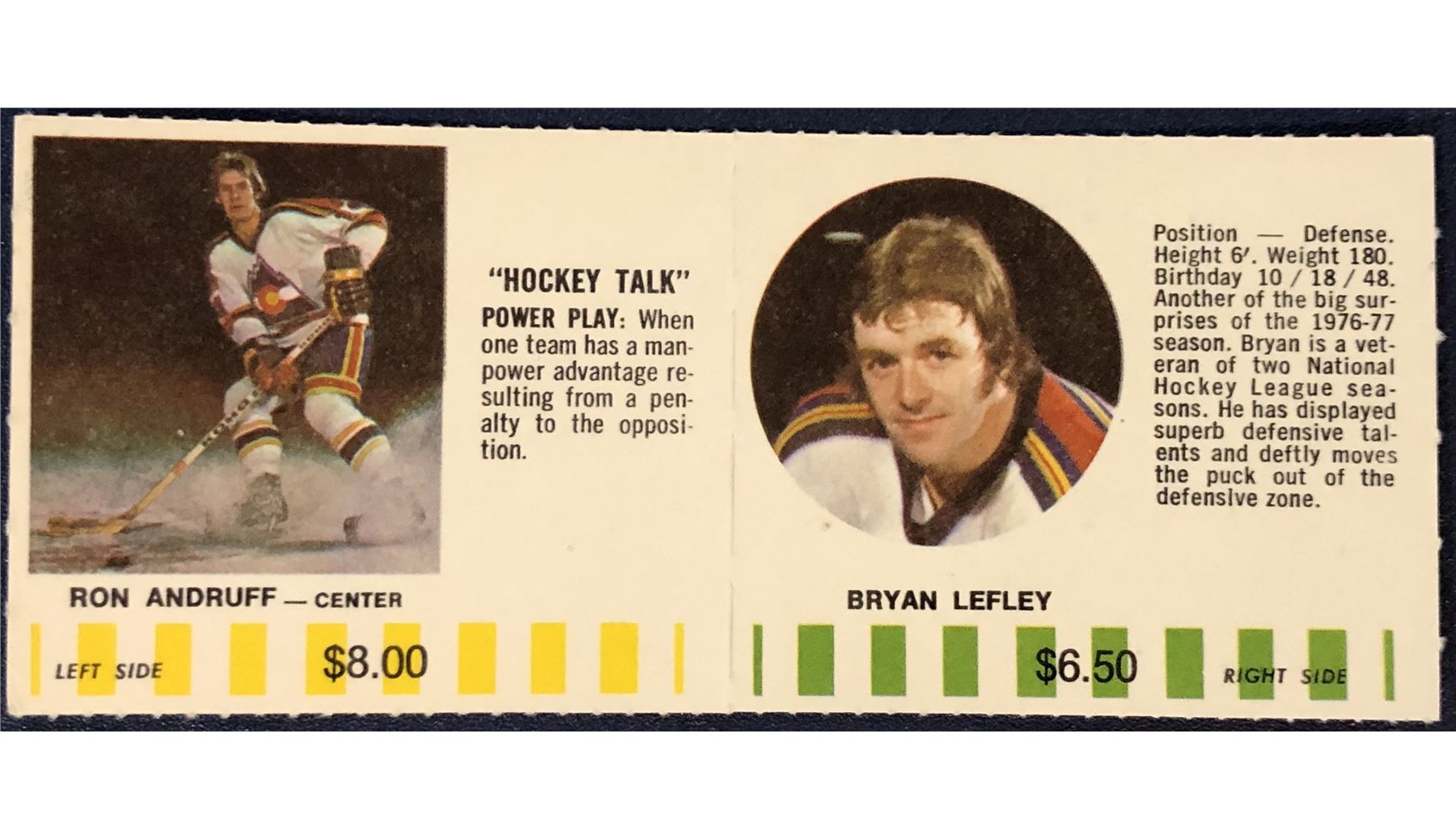 1976-77 COLORADO ROCKIES NHL PUCK BUCKS GAME CARD - ANDRUFF / LEFLEY