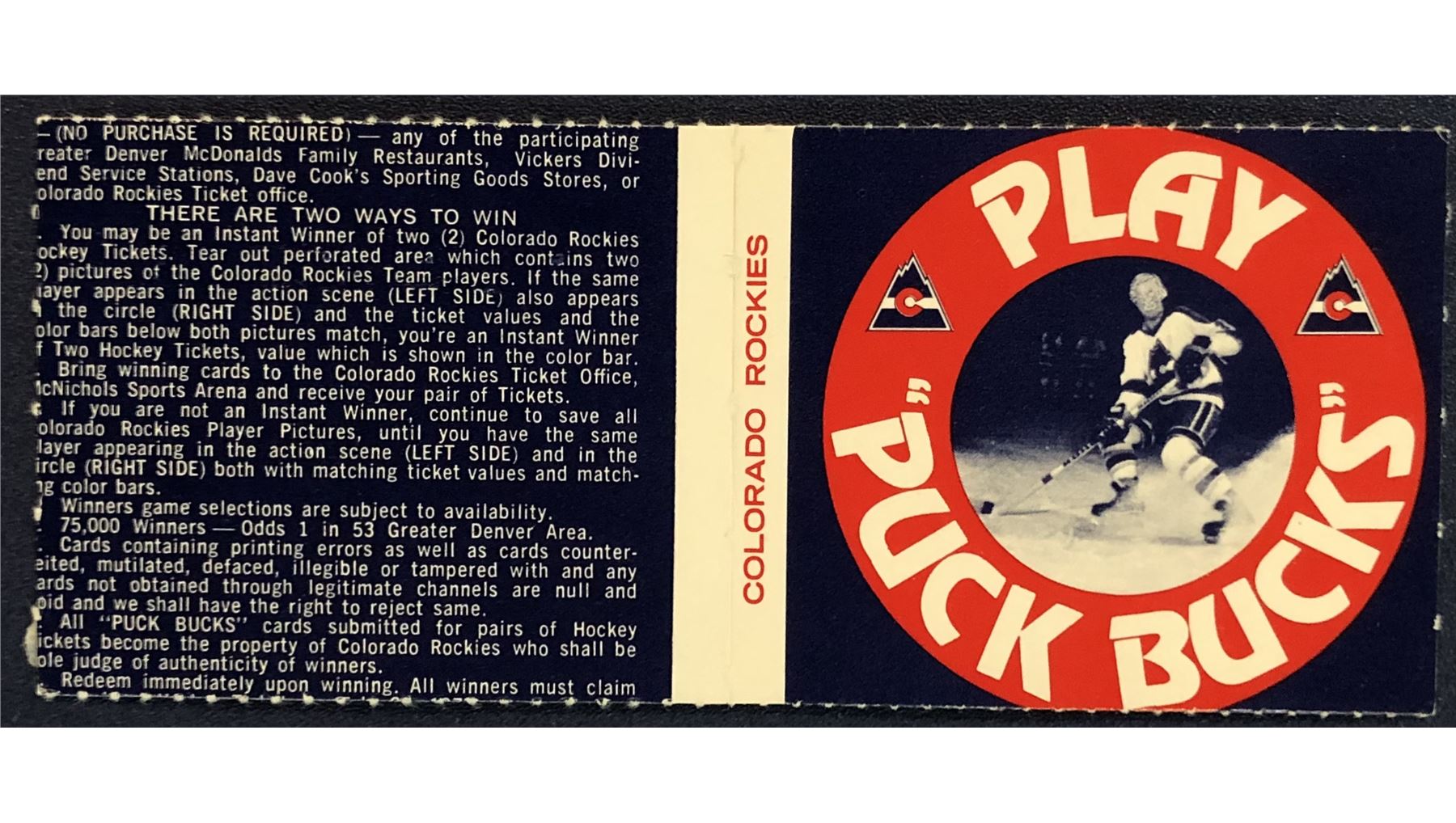 Lot 1174 1976-77 COLORADO ROCKIES NHL PUCK BUCKS GAME CARD - TOM EDUR
