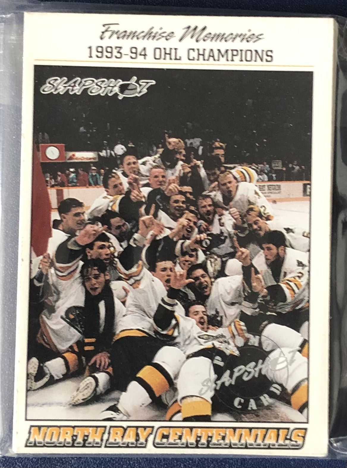 Lot 1191 1993-94 SLAPSHOT NORTH BAY CENTENNIALS (OHL) TEAM SET