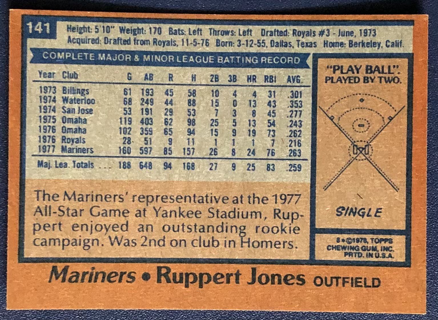 Lot 1216 1978 TOPPS RUPPERT JONES ROOKIE CARD