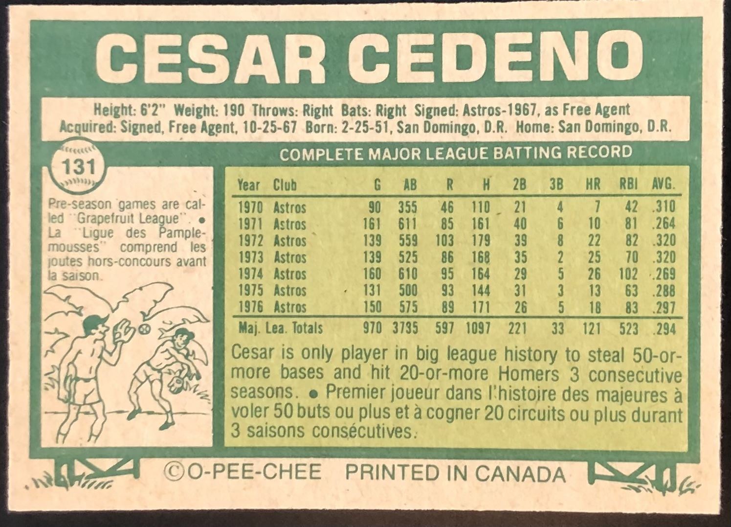 Lot 1228 1977 O-PEE-CHEE CESAR CEDENO (HOF)