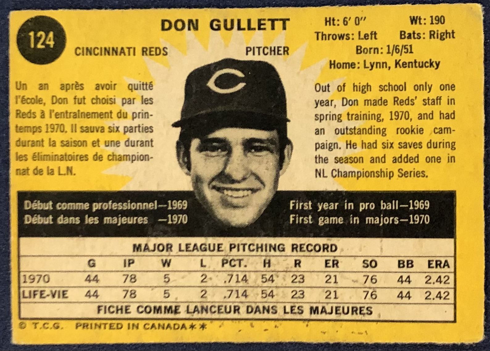 Lot 1233 1971 O-PEE-CHEE DON GULLETT ROOKIE CARD