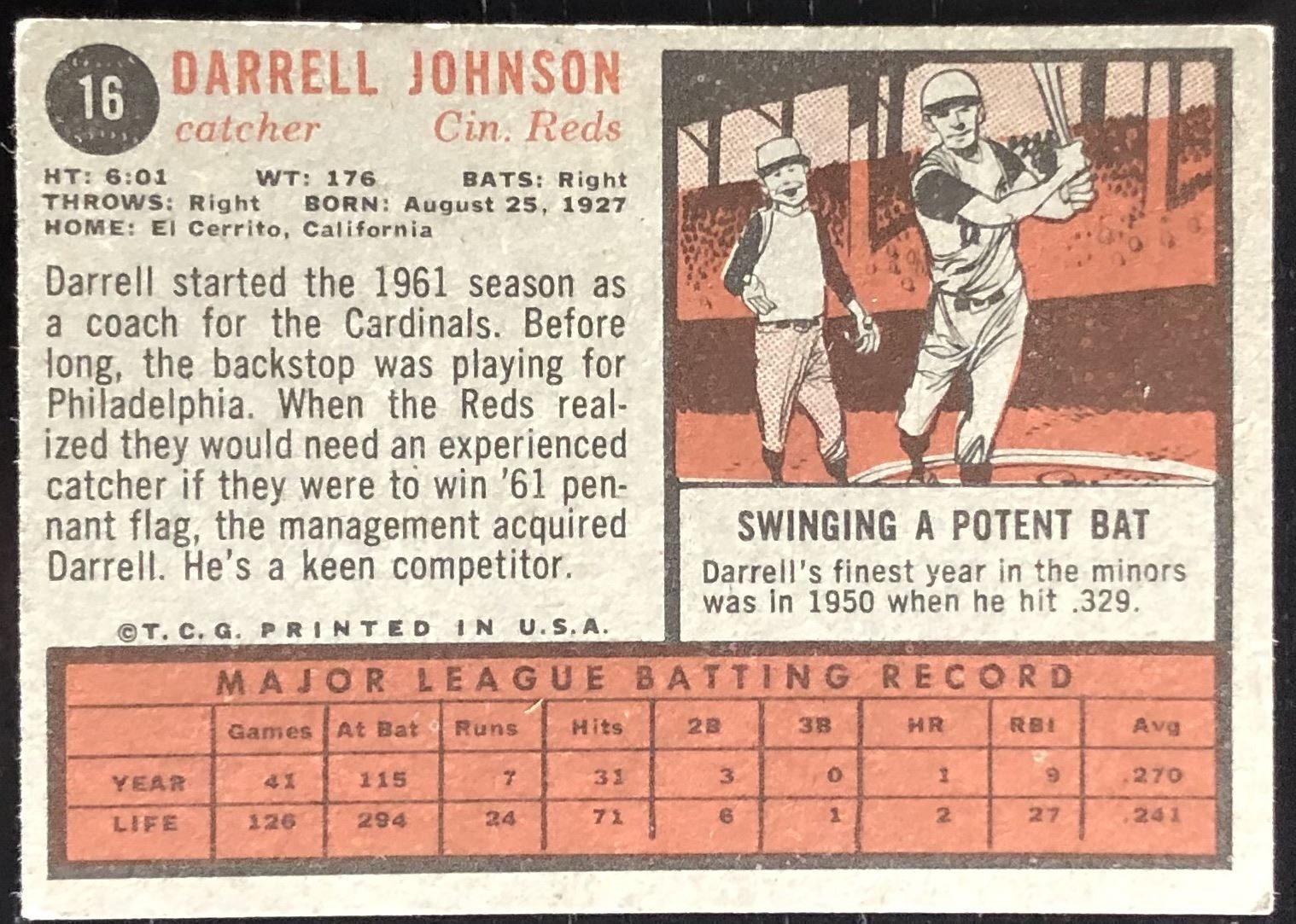 Lot 1243 1962 TOPPS DARRELL JOHNSON