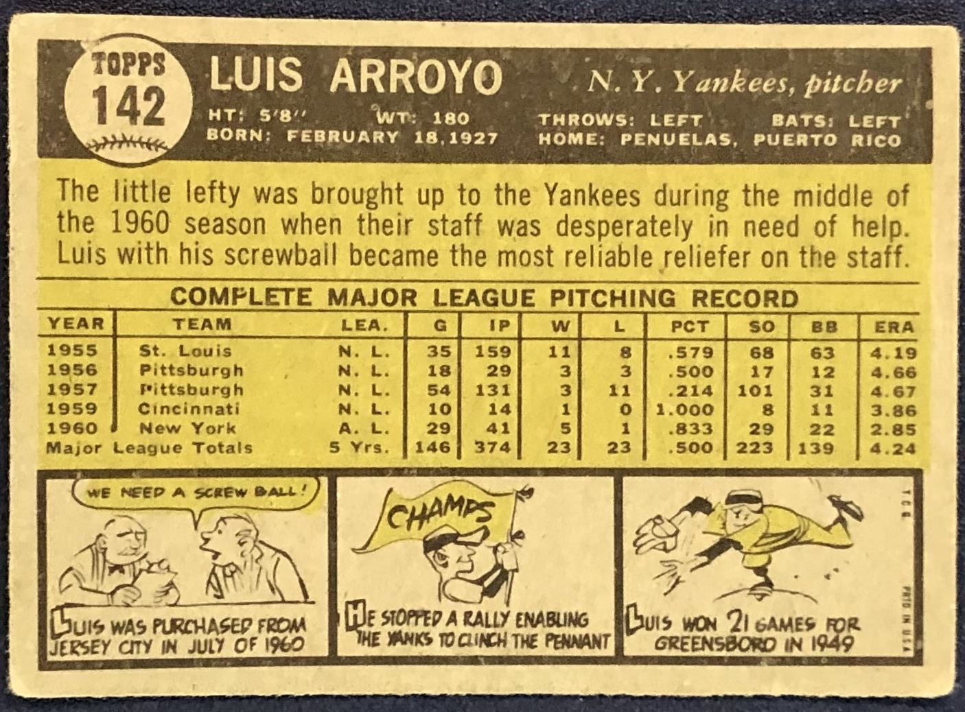 Lot 1245 1961 TOPPS BASEBALL LUIS ARROYO