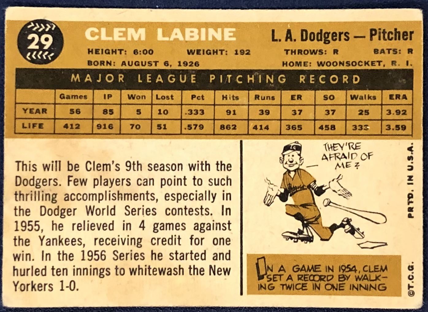 Lot 1256 1960 TOPPS BASEBALL WHITE BACKS - CLEM LABINE