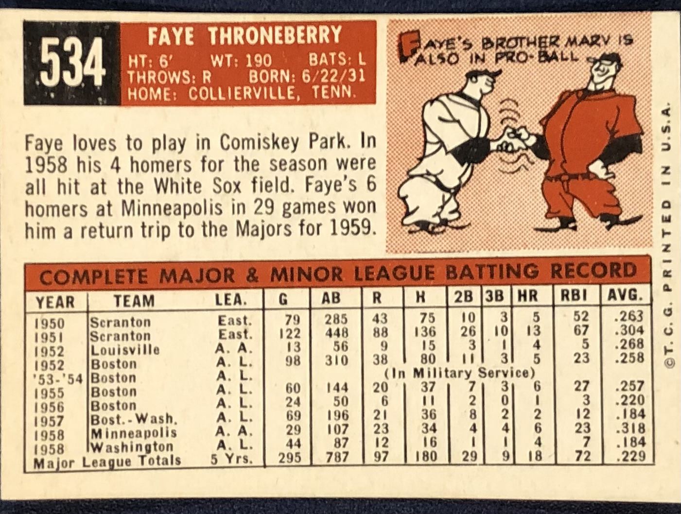 Lot 1260 1959 TOPPS WHITE BACKS HIGH NUMBERS - FAYE THORNEBERRY