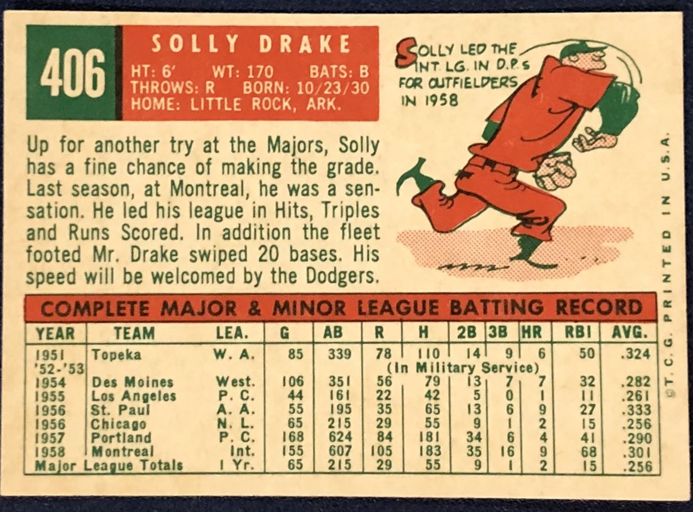 Lot 1262 1959 TOPPS WHITE BACKS - SOLLY DRAKE ROOKIE CARD
