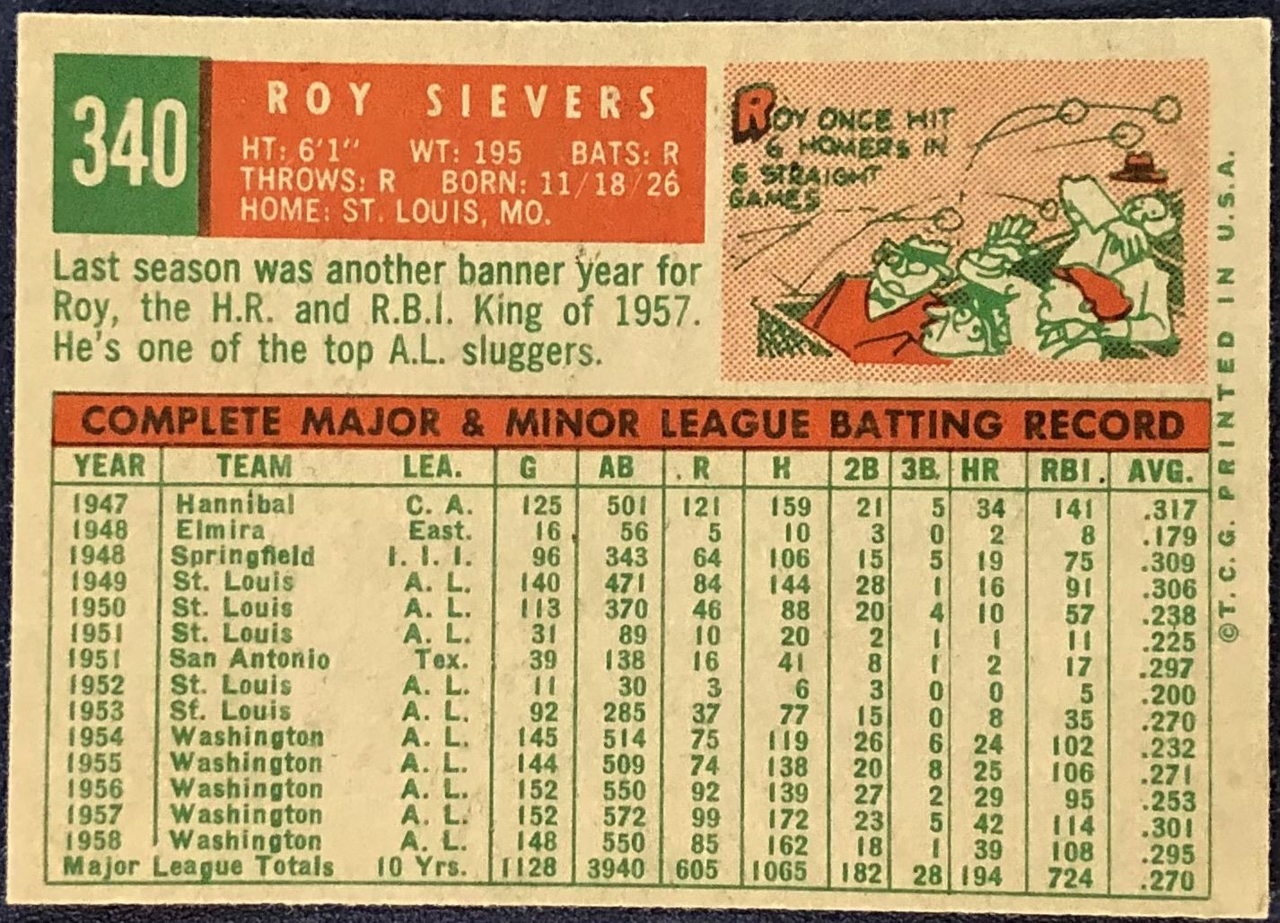 Lot 1266 1959 TOPPS GRAY BACKS - ROY SIEVERS