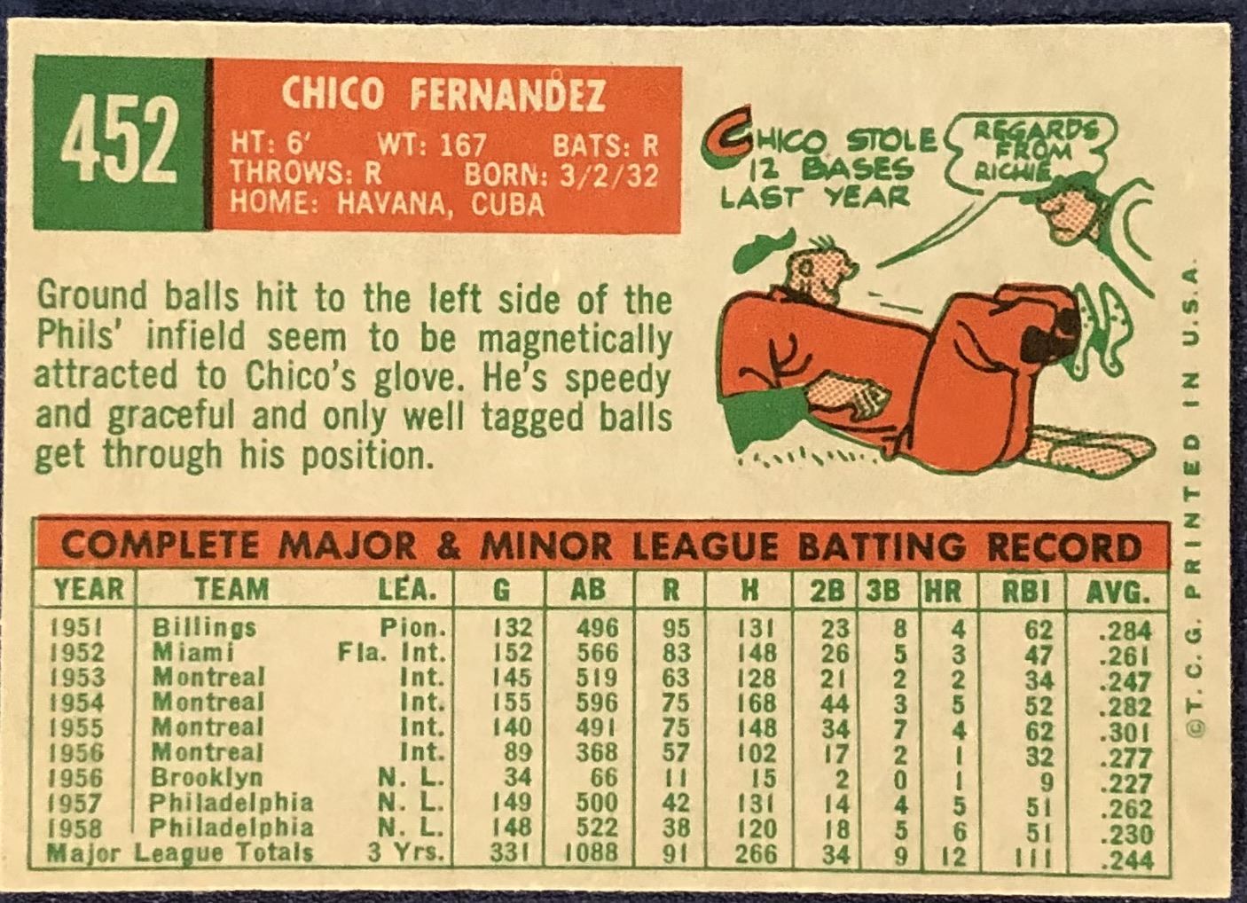 Lot 1271 1959 TOPPS GRAY BACKS - CHICO FERNANDEZ