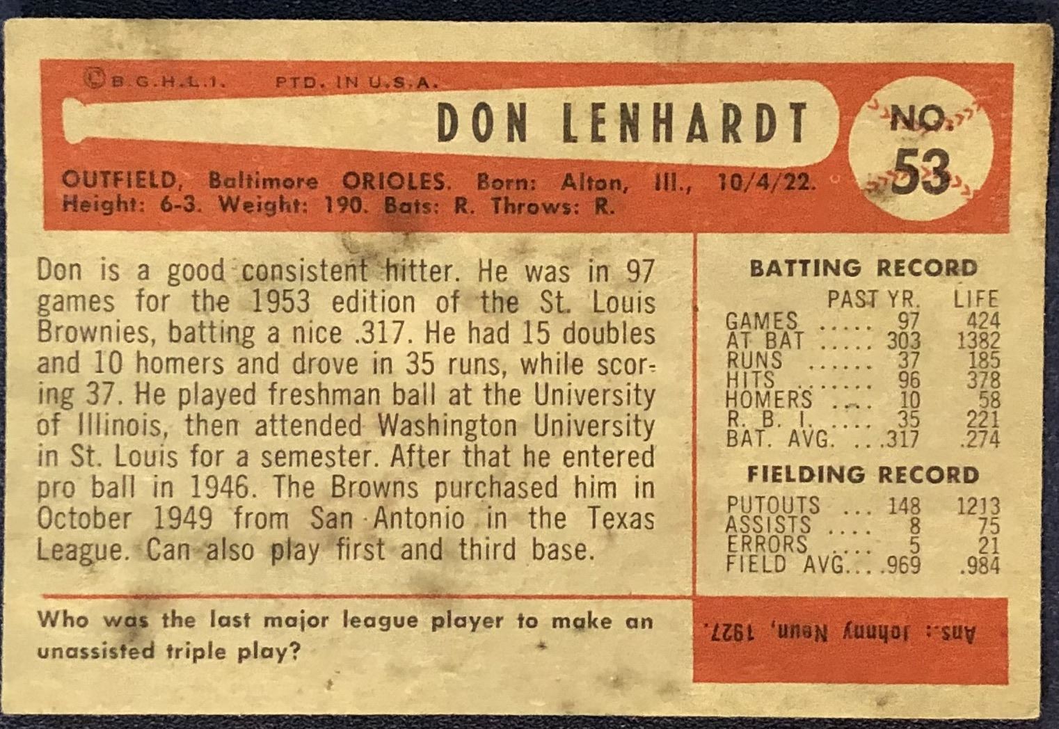 Lot 1280 1954 BOWMAN DON LENHARDT