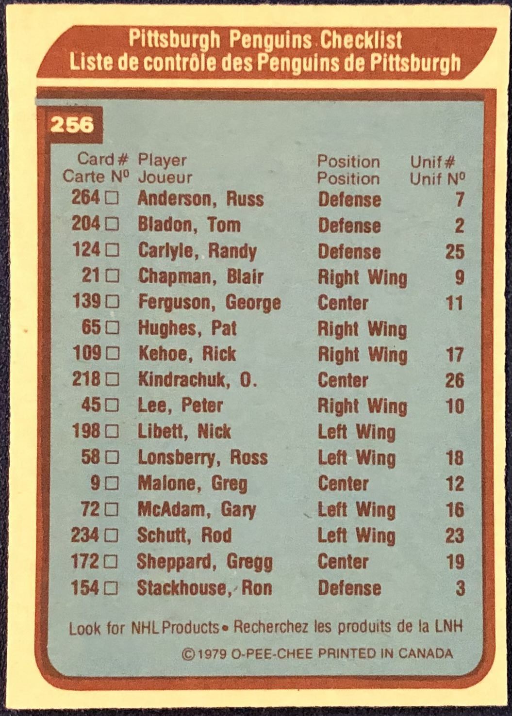 Lot 1285 1979-80 O-PEE-CHEE PITTSBURGH PENGUINS