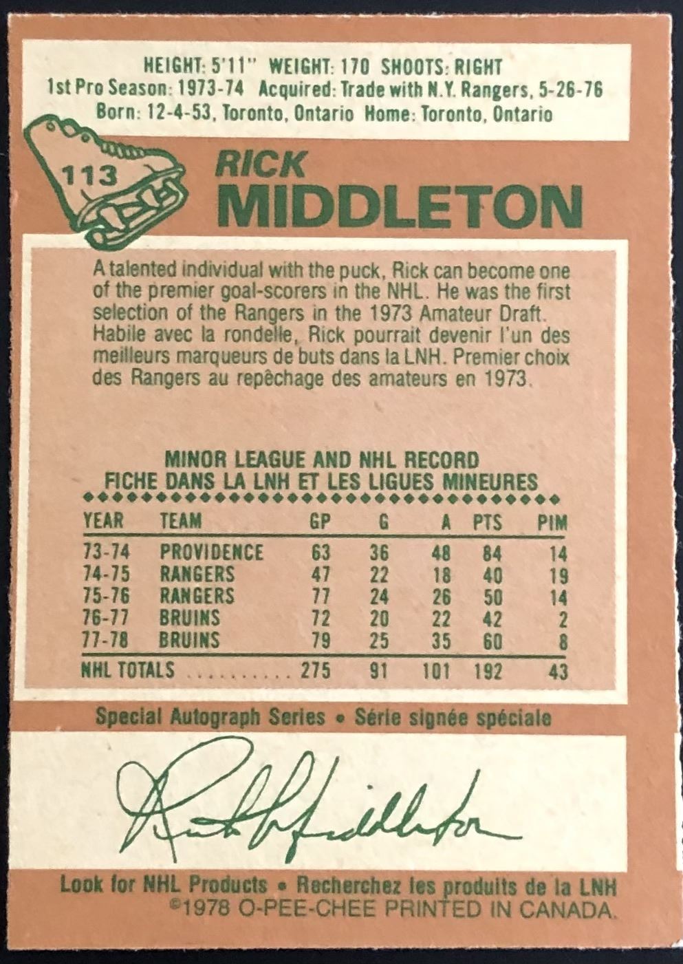 Lot 1293 1978-79 O-PEE-CHEE RICK MIDDLETON (HOF)
