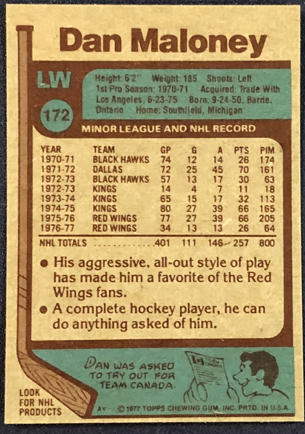 Lot 1306 1977-78 TOPPS DAN MALONEY