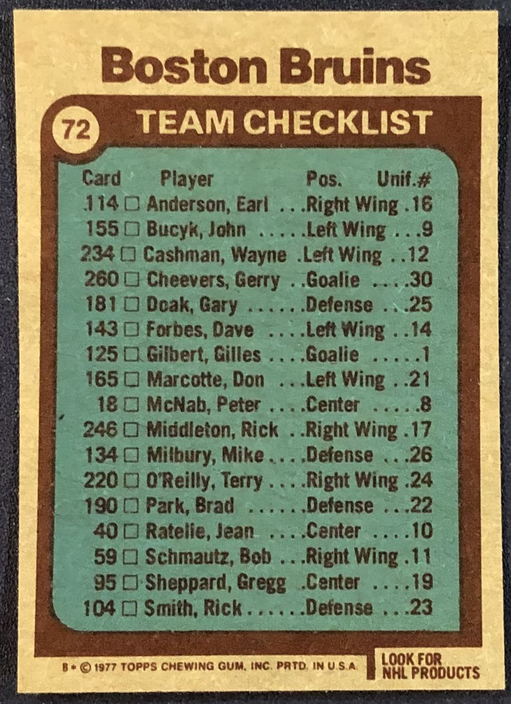 Lot 1308 1977-78 TOPPS BOSTON BRUINS
