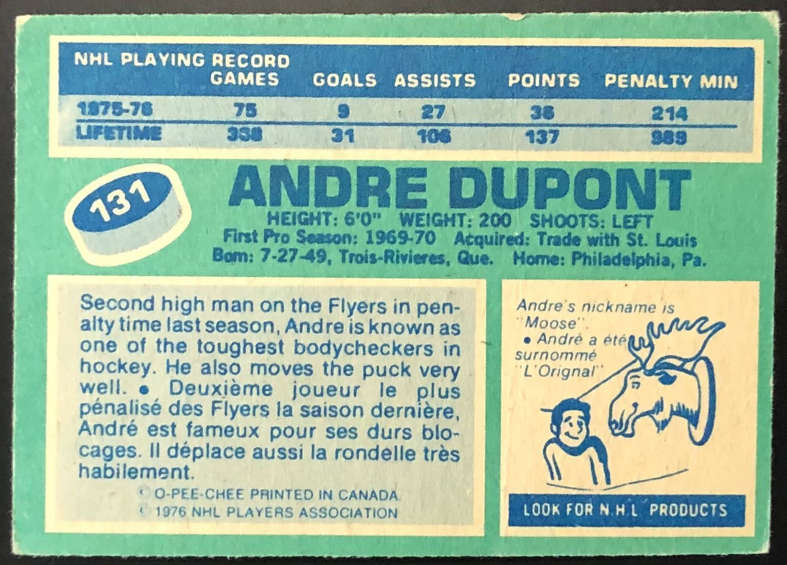 Lot 1314 1976-77 O-PEE-CHEE ANDRE DUPONT