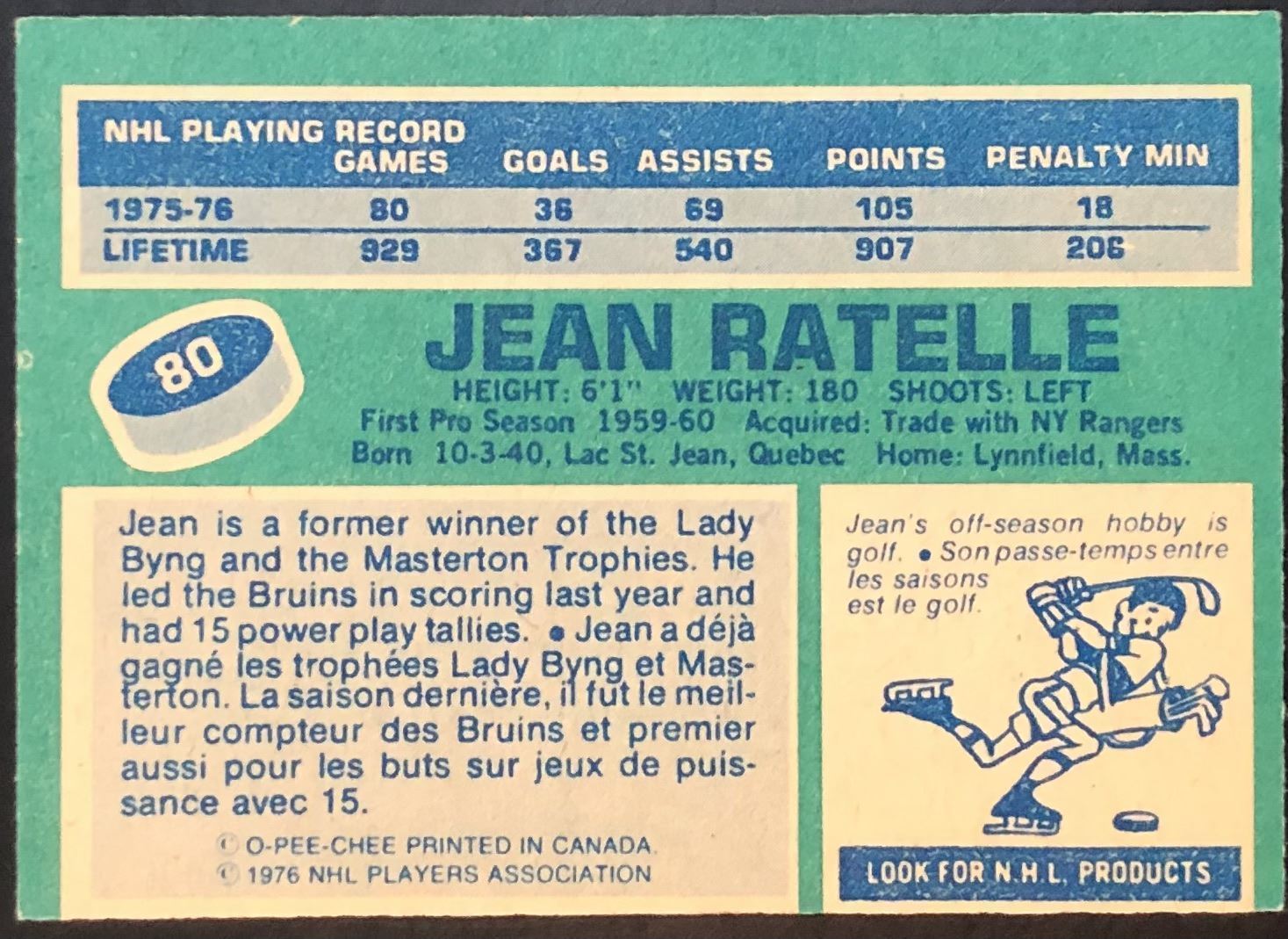 Lot 1317 1976-77 NHL O-PEE-CHEE JEAN RATELLE (HOF)