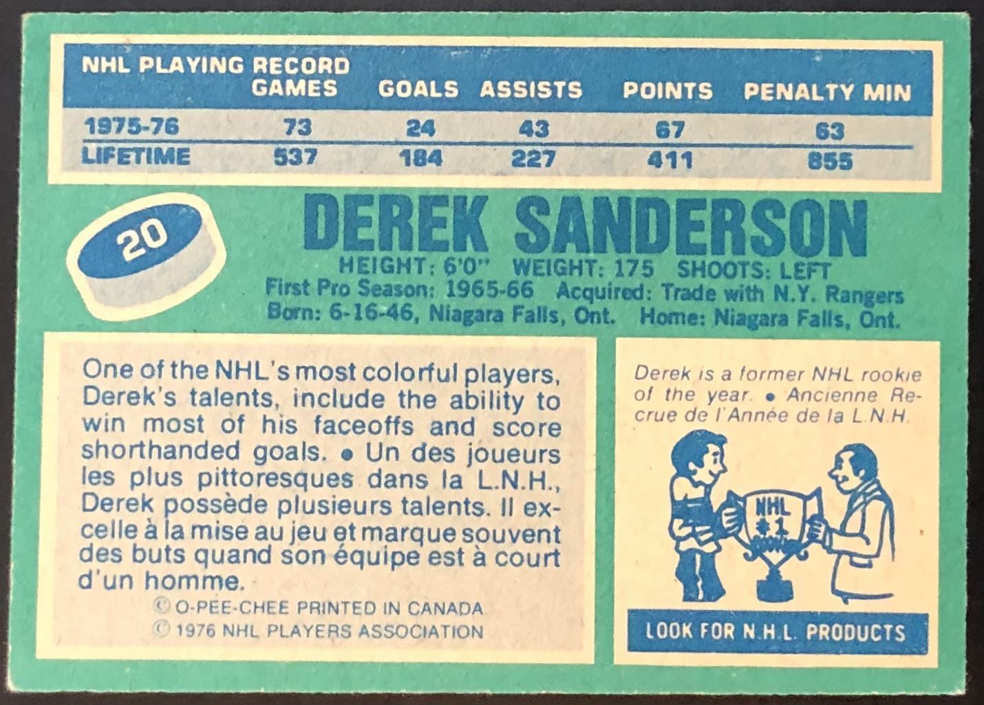 Lot 1319 1976-77 NHL O-PEE-CHEE DEREK SANDERSON