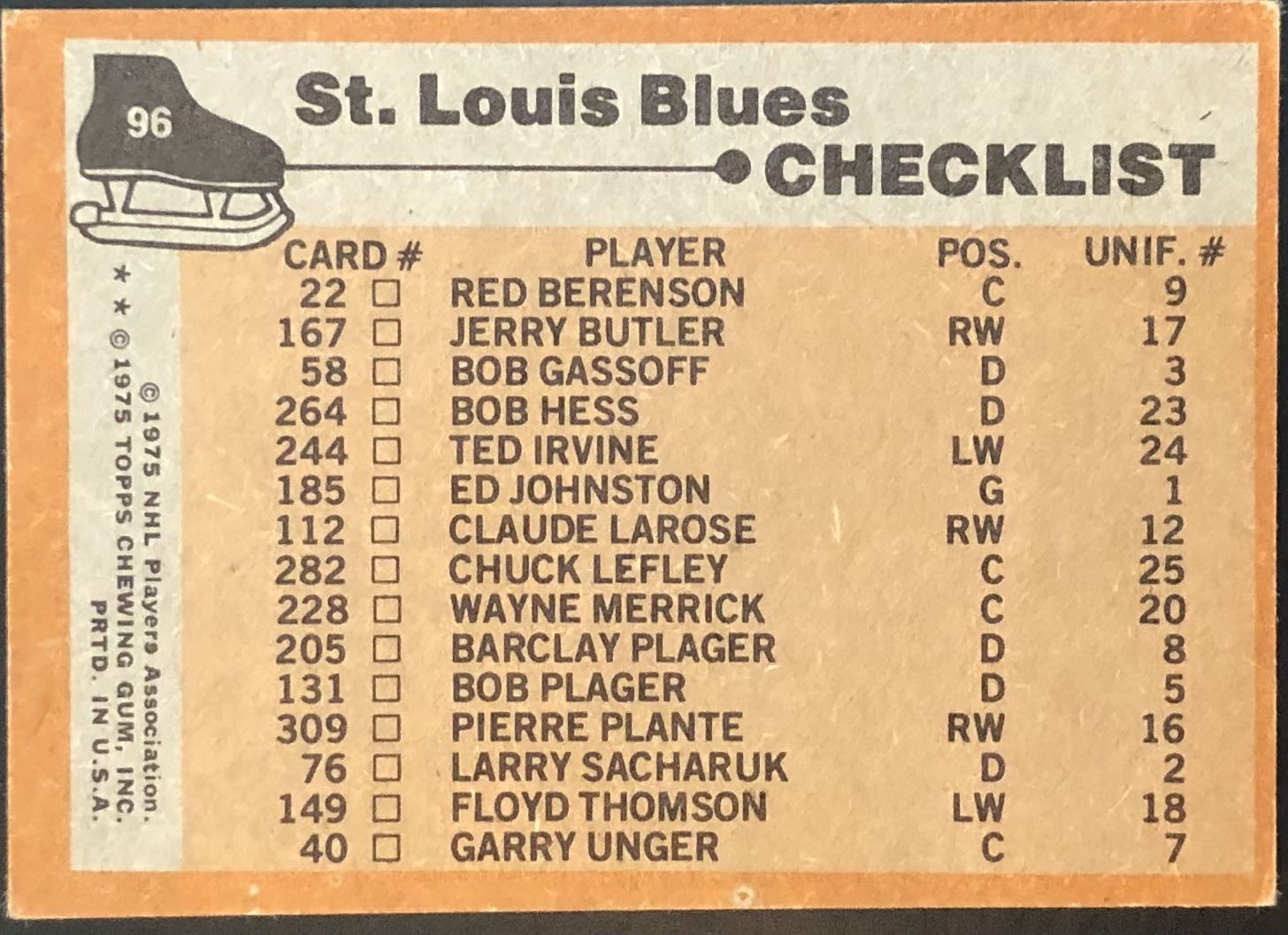 Lot 1325 1975-76 NHL TOPPS ST. LOUIS BLUES
