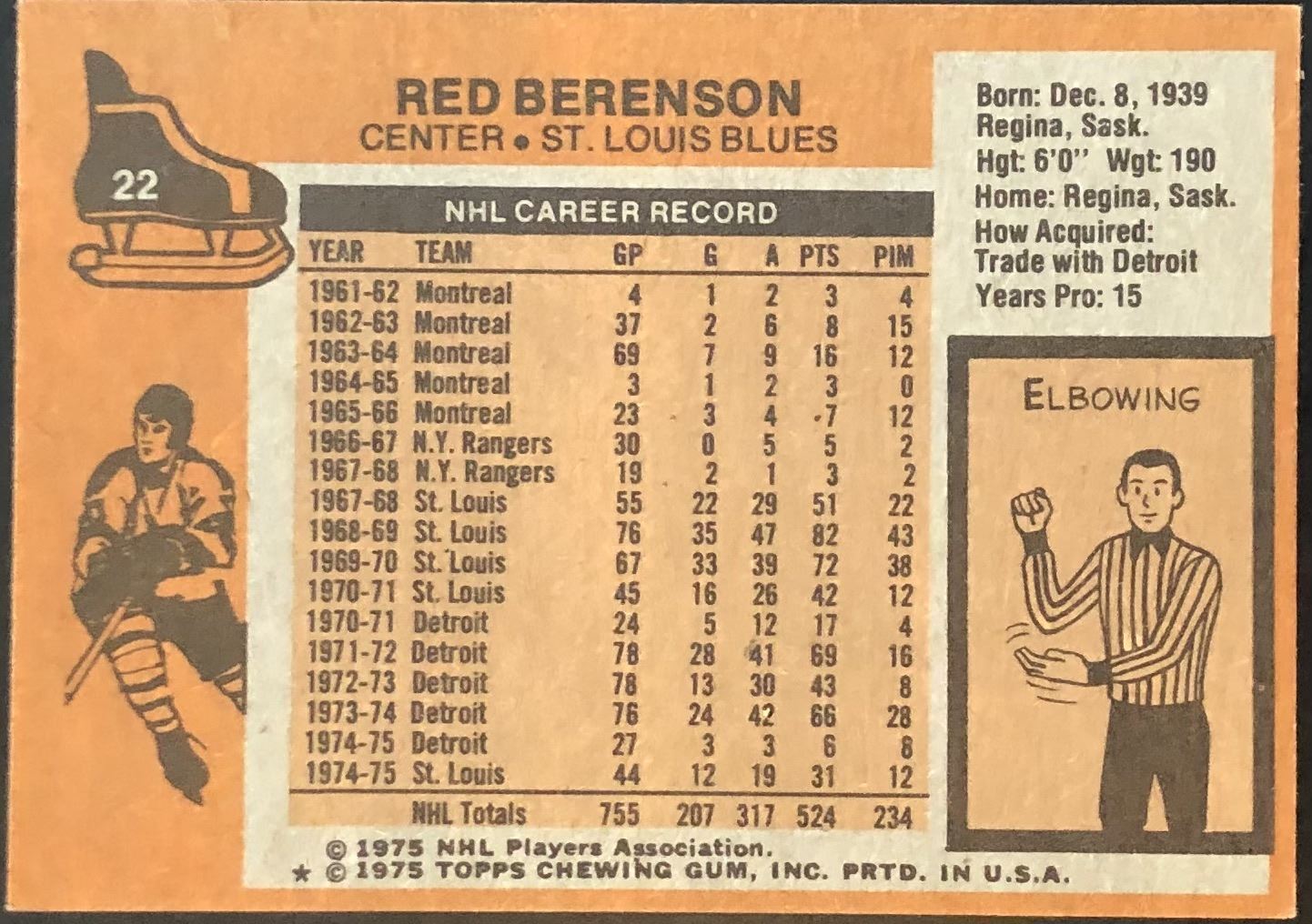 Lot 1326 1975-76 NHL TOPPS RED BERENSON (HOF)