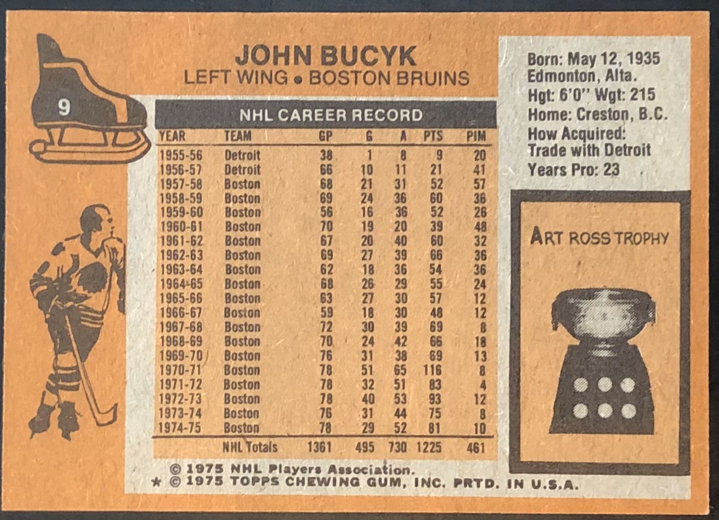 Lot 1328 1975-76 NHL TOPPS JOHNNY BUCYK (HOF)