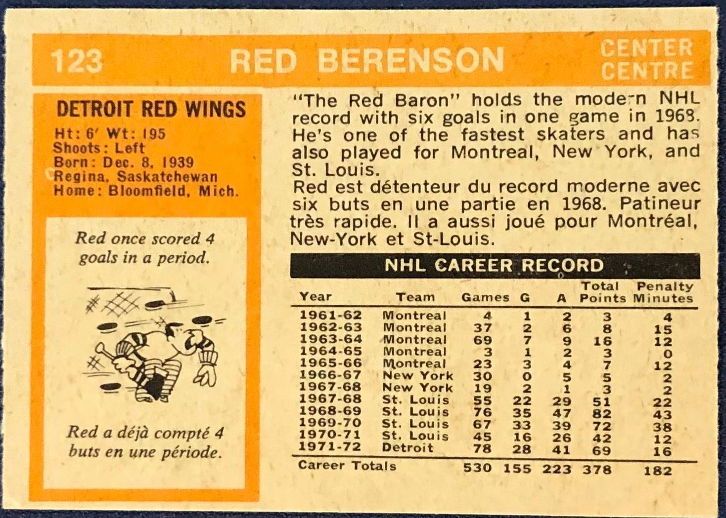 Card #123 NHL, hockey, vintage, OPC, hall of fame