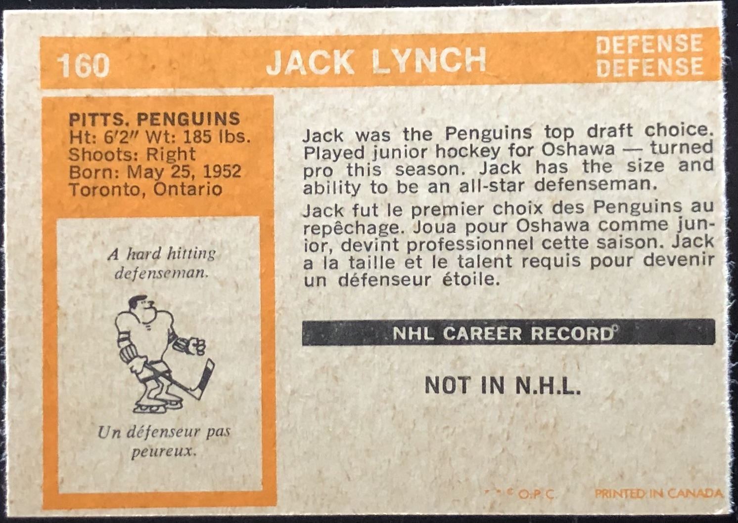 Lot 1345 1972-73 O-PEE-CHEE JACK LYNCH ROOKIE CARD