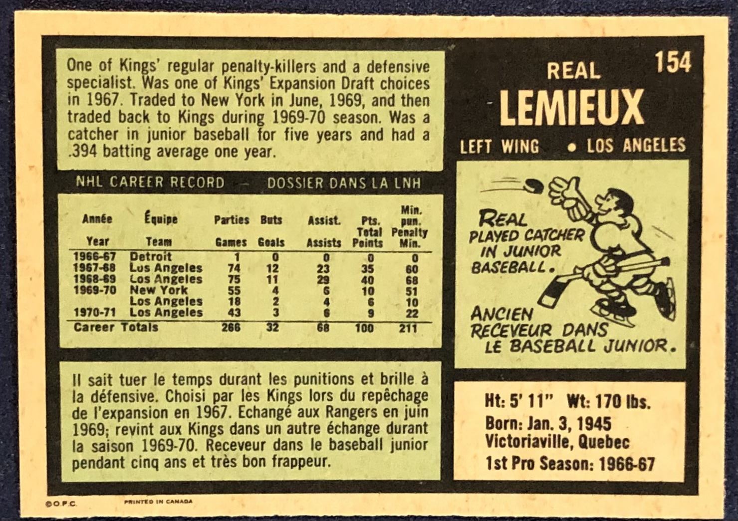 Lot 1348 1971-72 O-PEE-CHEE REAL LEMIEUX