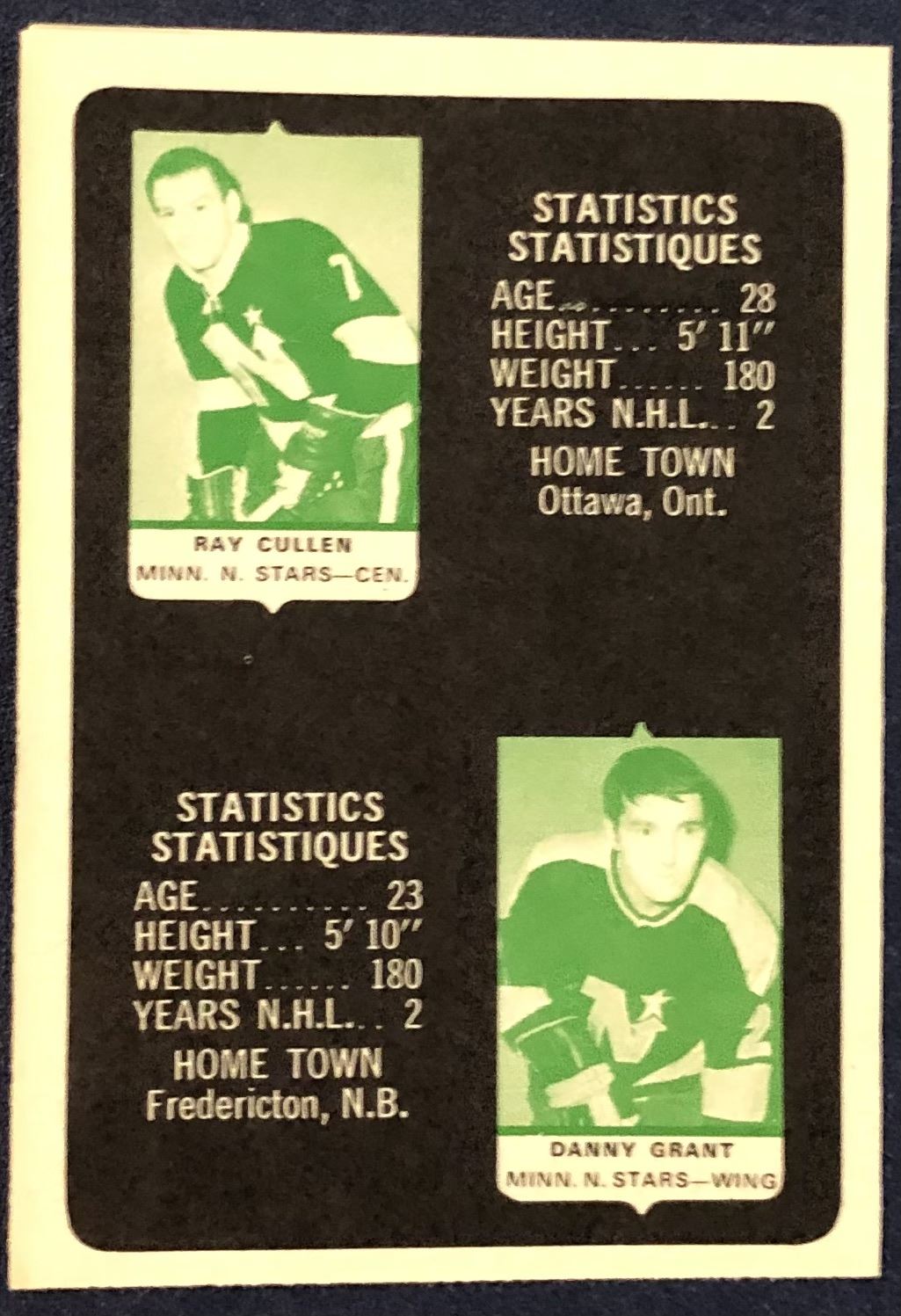 1969-70 O-PEE-CHEE NHL MINI CARD ALBUM - MINNESOTA NORTH STARS