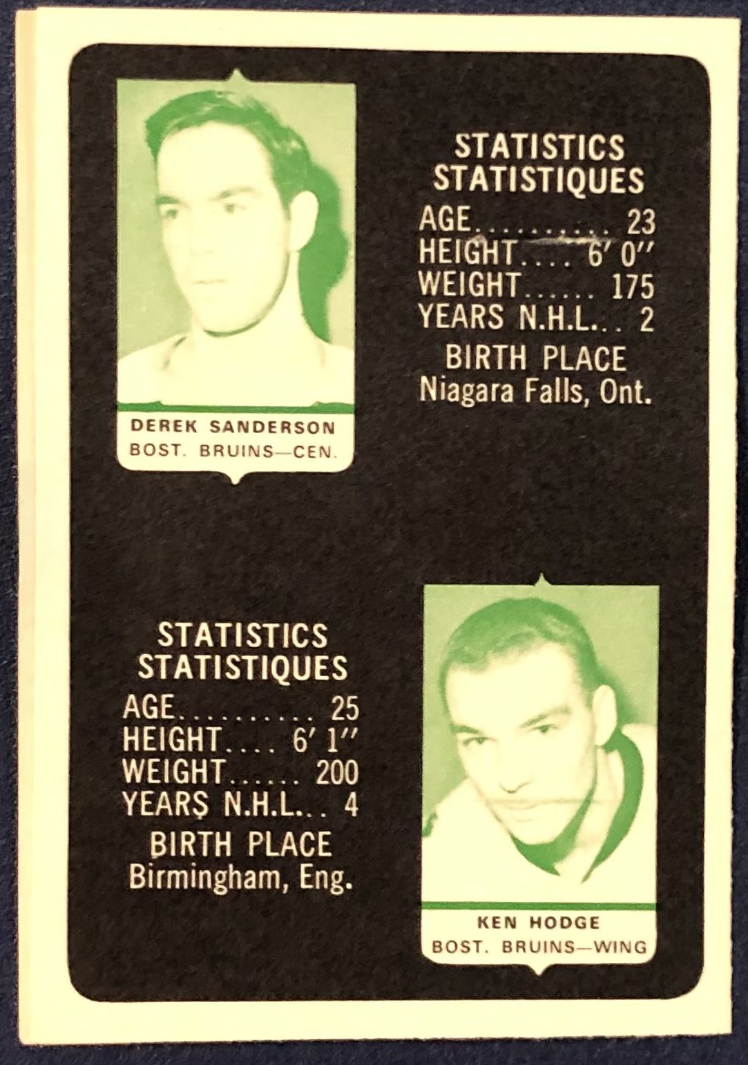 1969-70 O-PEE-CHEE NHL MINI CARD ALBUM - BOSTON BRUINS