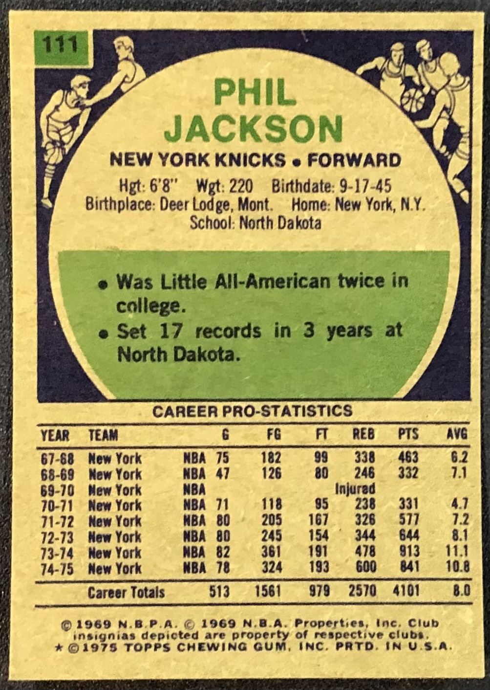 Lot 1438 1975-76 TOPPS PHIL JACKSON (HOF)