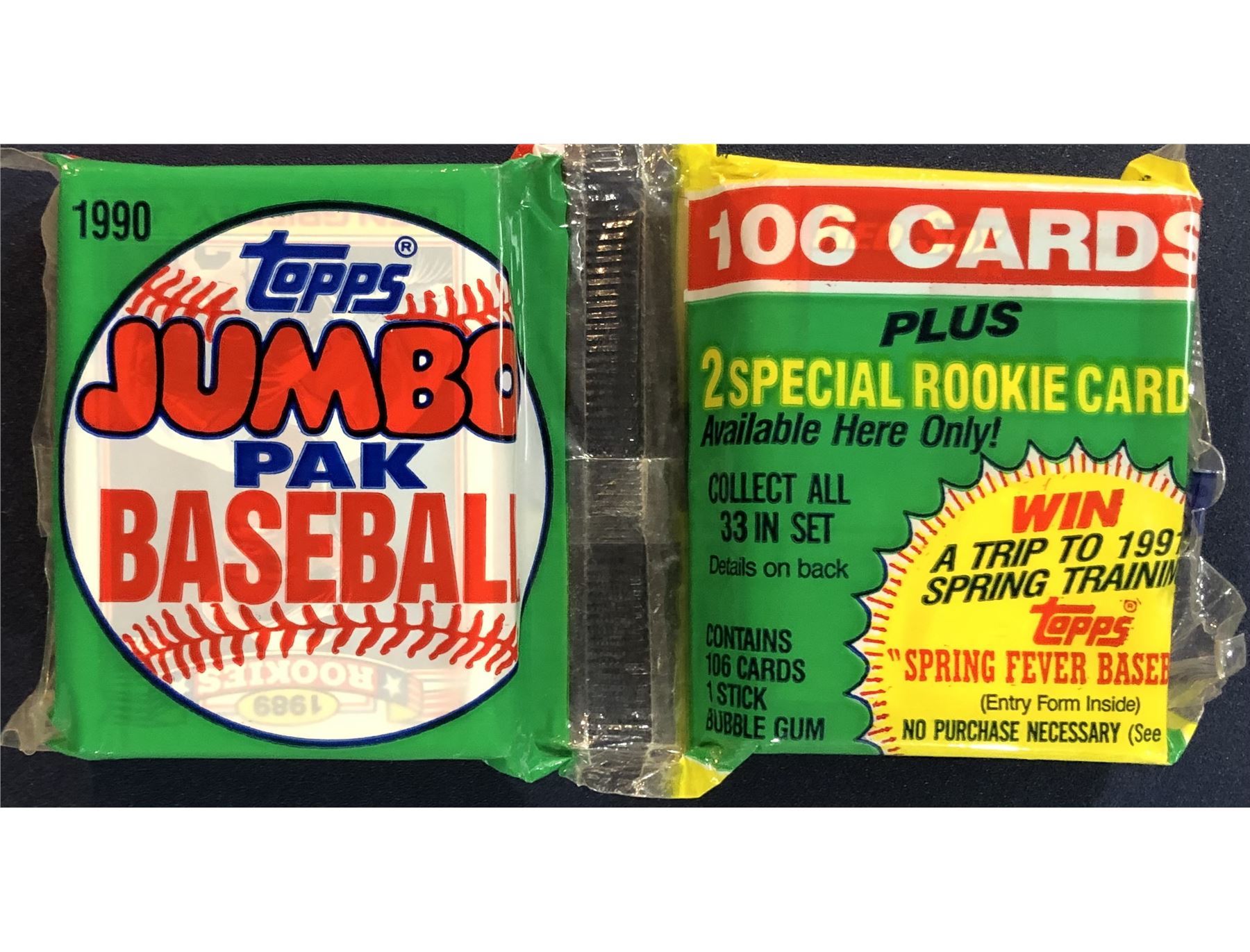 Lot 1446 1990 TOPPS BASEBALL JUMBO PACK - KEN GRIFFEY JR. (HOF) & ERIC DAVIS SHOWING