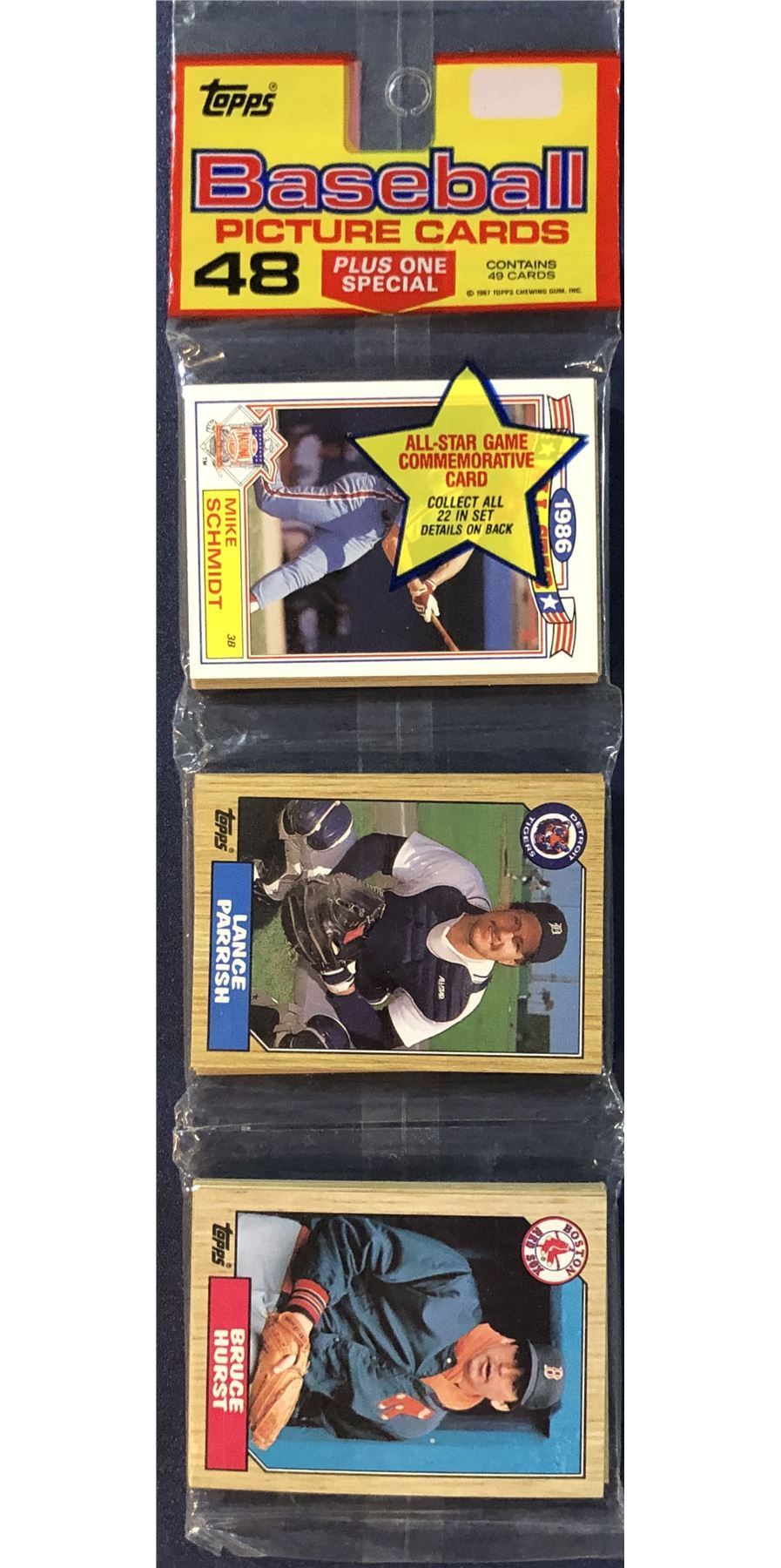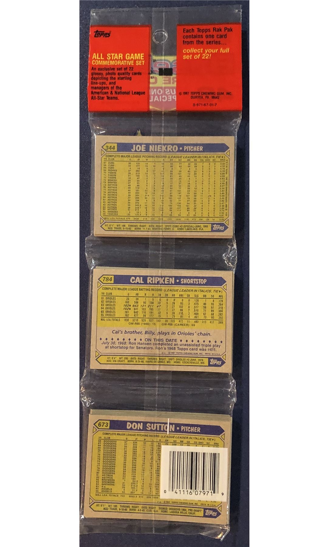 Lot 1447 1987 TOPPS BASEBALL RACK PACK - MIKE SCHMIDT & CAL RIPKEN JR. (HOF) SHOWING