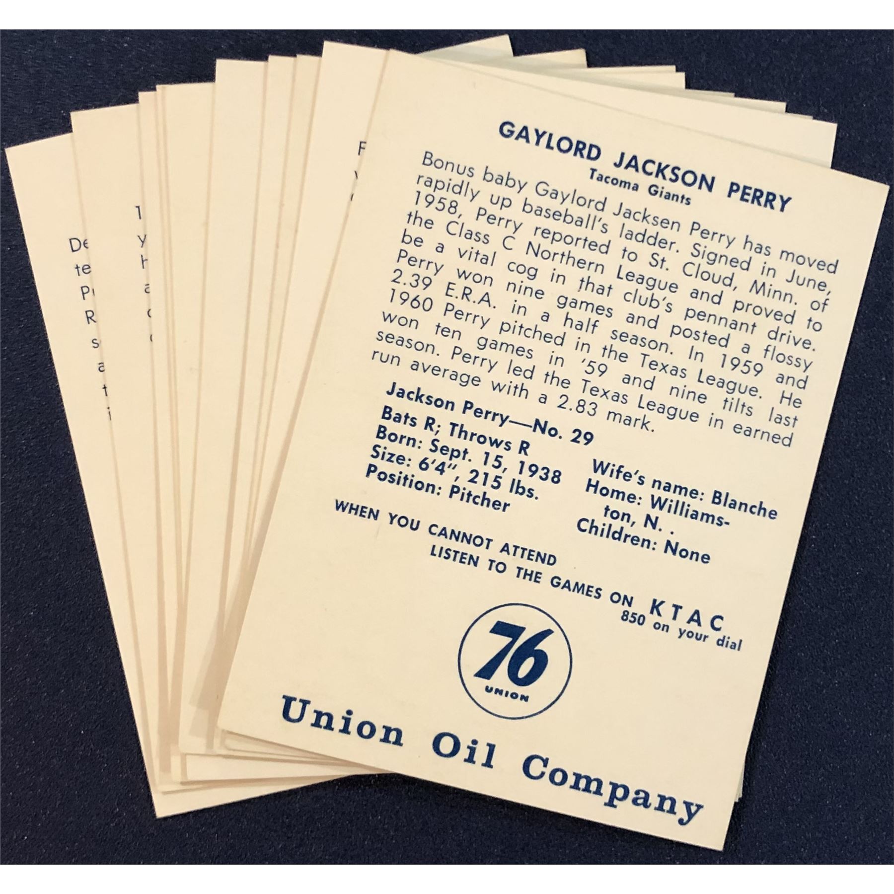Lot 1456 1961 UNION OIL TACOMA GIANTS SET FEAT. GAYLOR PERRY (HOF)