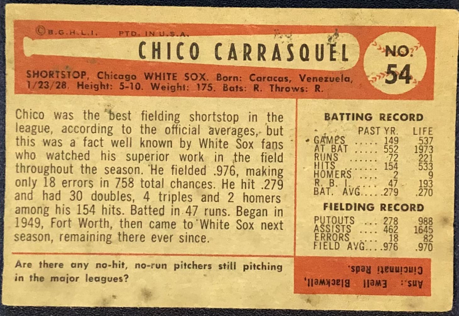 Lot 1465 1954 BOWMAN CHICO CARRASQUEL