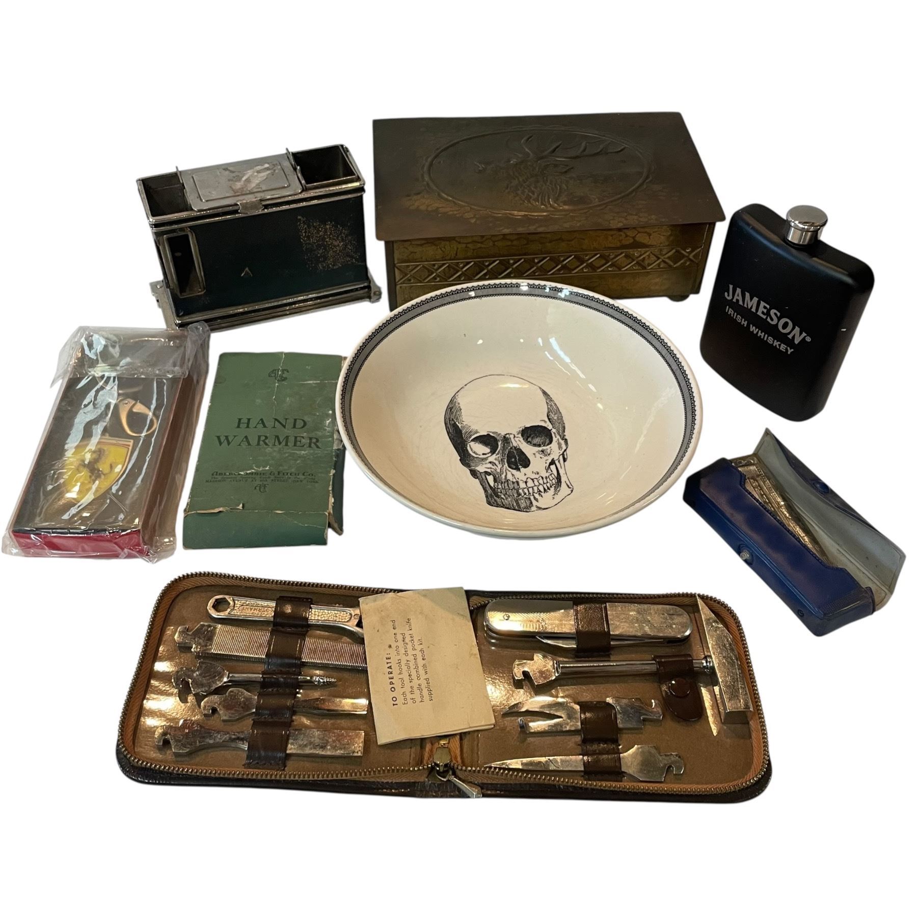 Gentlemen's Lot of Hand Warmer, Cigarette Stand, Harmonica, Porche Key Chain and more